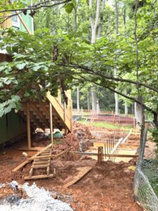 • Concrete work is now complete, including handicap-access (ADA) parking spaces, the rear terrance, the pathways, and the bookstore floor and porch.
